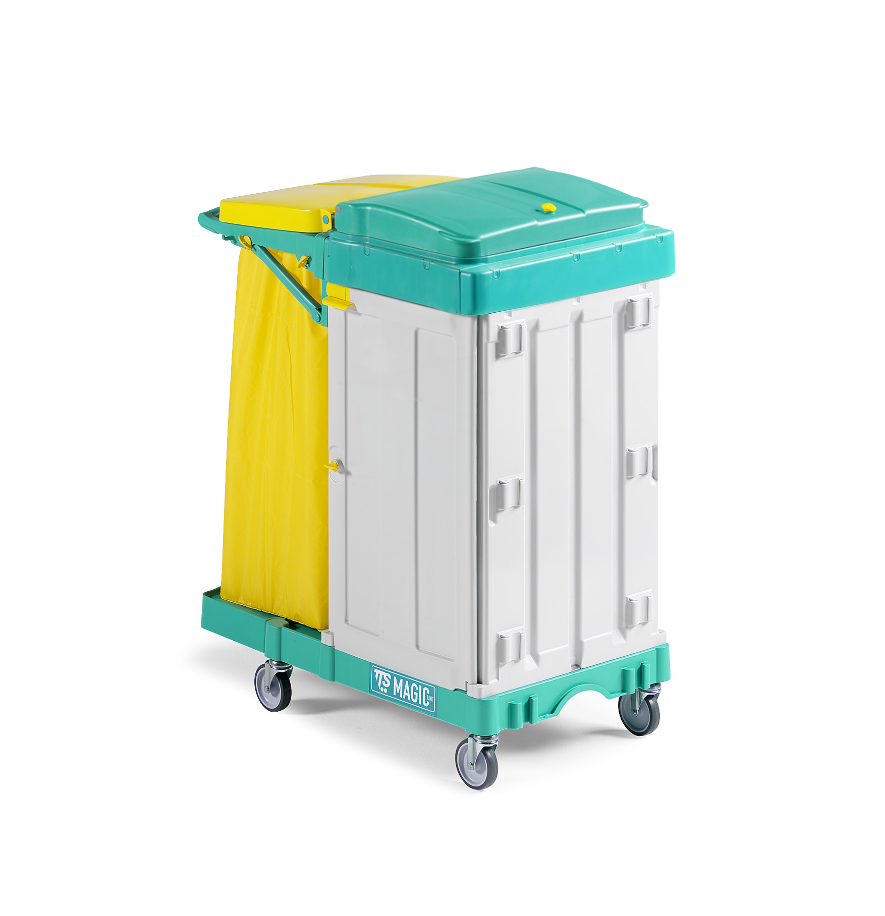 -Superfici arrotondate e lisce, l’utilizzo di materiale plastico (polipropilene) di prima scelta, l’utilizzo di tappi e copertine che chiudono ogni foro rendono il carrello senza punti critici, quindi igienico e facile da pulire.